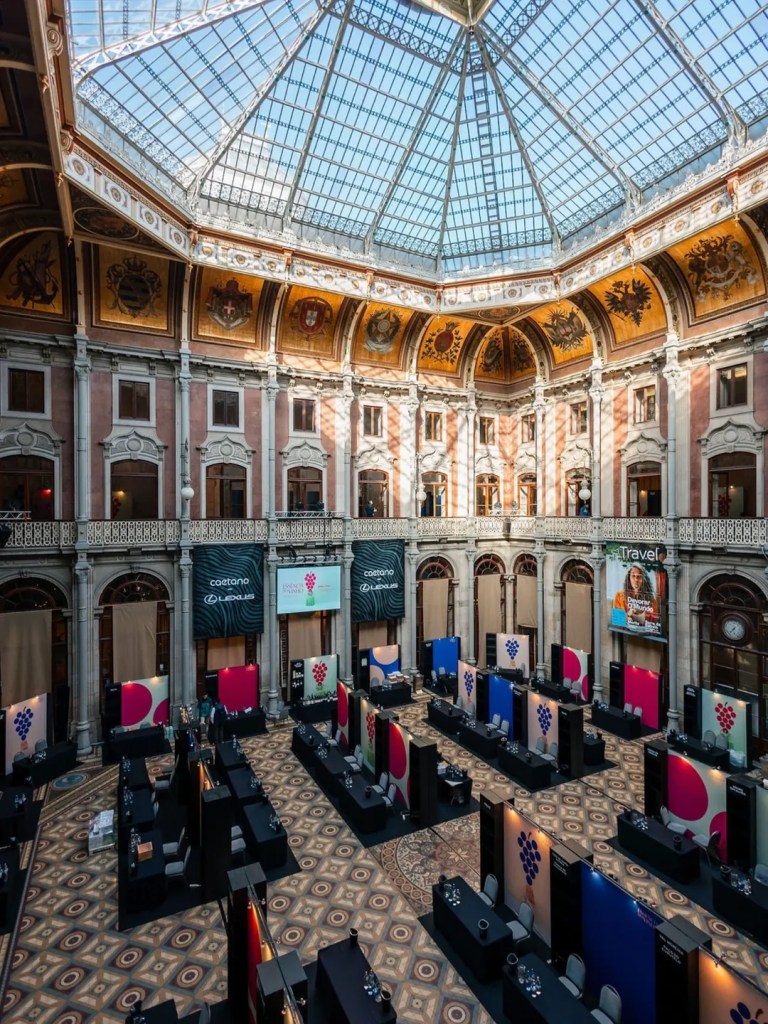 Pátio das Nações do Palácio da Bolsa, após montagem do evento da Essência do Vinho – Porto 2026.